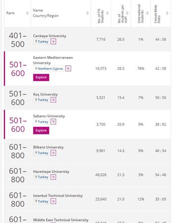 لازم به اشاره است که در پی این ارتقای چشمگیر جایگاهی، دانشگاه مدیترانه شرقی، از رتبه ی هشتم برترین دانشگاه های ترکیه، به جایگاه دوم، در میان تمام دانشگاه های ترکیه نیز دست یافت، و بالاتر از سایر دانشگاه ها چون دانشگاه کوچ، بیلکنت، سابانجی و غیره قرارگرفت.